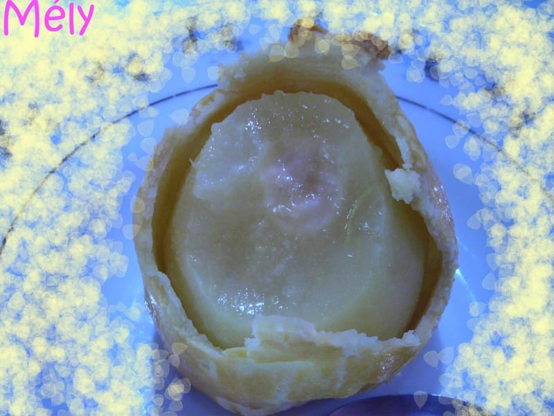 Qui est la plus belle, la pommes sous son douillon… ou Mély ?…. j’hésite….