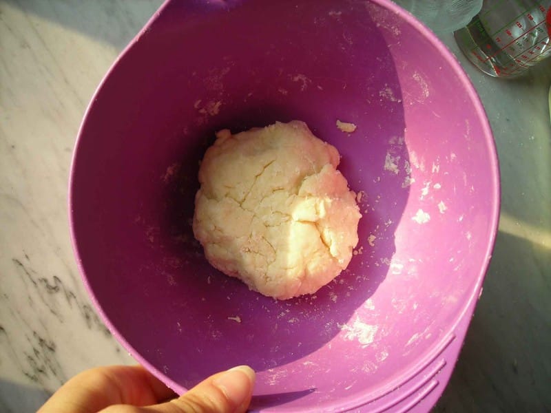 2- Ajoutez l’eau, puis pétrissez le mélange jusqu’à l’obtention d’une pâte.