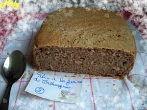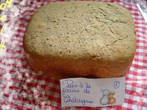 J’ai repris la version du pain à la farine de châtaignes tirée du livre Pain maison spécial machine à pain des éditions Marabout.