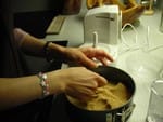 - Versez la préparation dans votre moule, par dessus la base buiscuitée.