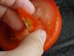 - Retirez les graines des tomates, puis découpez vos tomates en dés.
