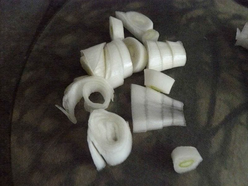 - Détachez la tige tendre (le coeur) de l’oignon. Découpez-le en rondelles. Réservez pour plus tard.