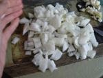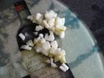 - Découpez en dés le reste de votre oignon.