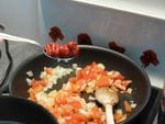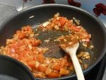 - Au bout de 5 min, ajoutez les dés de tomates. Remuez.