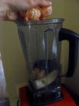 - Mettez tous les ingrédients dans le blender (en commençant par la banane congelée), et mixer le tout.