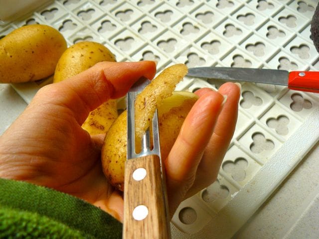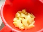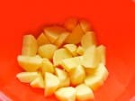 2. Epluchez vos pommes de terre, découpez les en dés, rincez les à l’eau.