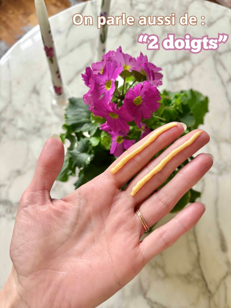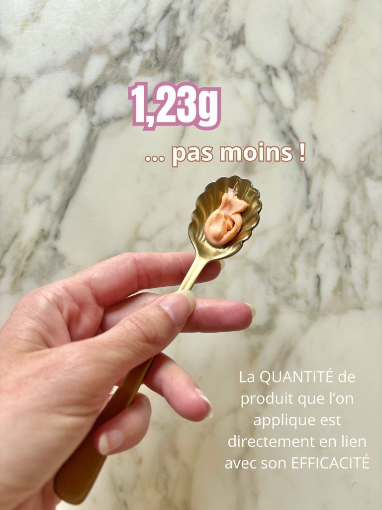 Il faudrait appliquer 1,23g soit 1/4 de cuillÚre à café. Beaucoup de sources (pour simplifier) parlent de « deux doigts ».